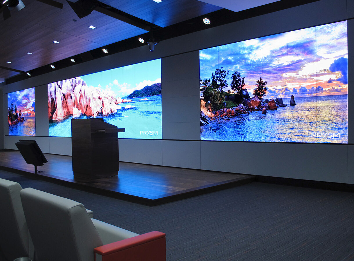 Indoor corporate lobbies, receptions | Small-pitch LED, thin bezels, high brightness | Seamless visuals, close viewing distance |