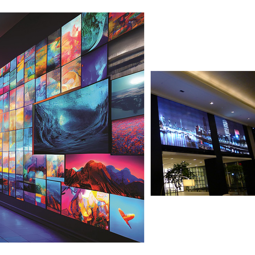 - Design & Planning: We design the layout: single-flat walls, curved walls, multi-panel grids, or bespoke shapes. We choose the right panels (pixel pitch, brightness, bezel width) and frame or mounting solution so the image looks seamless.